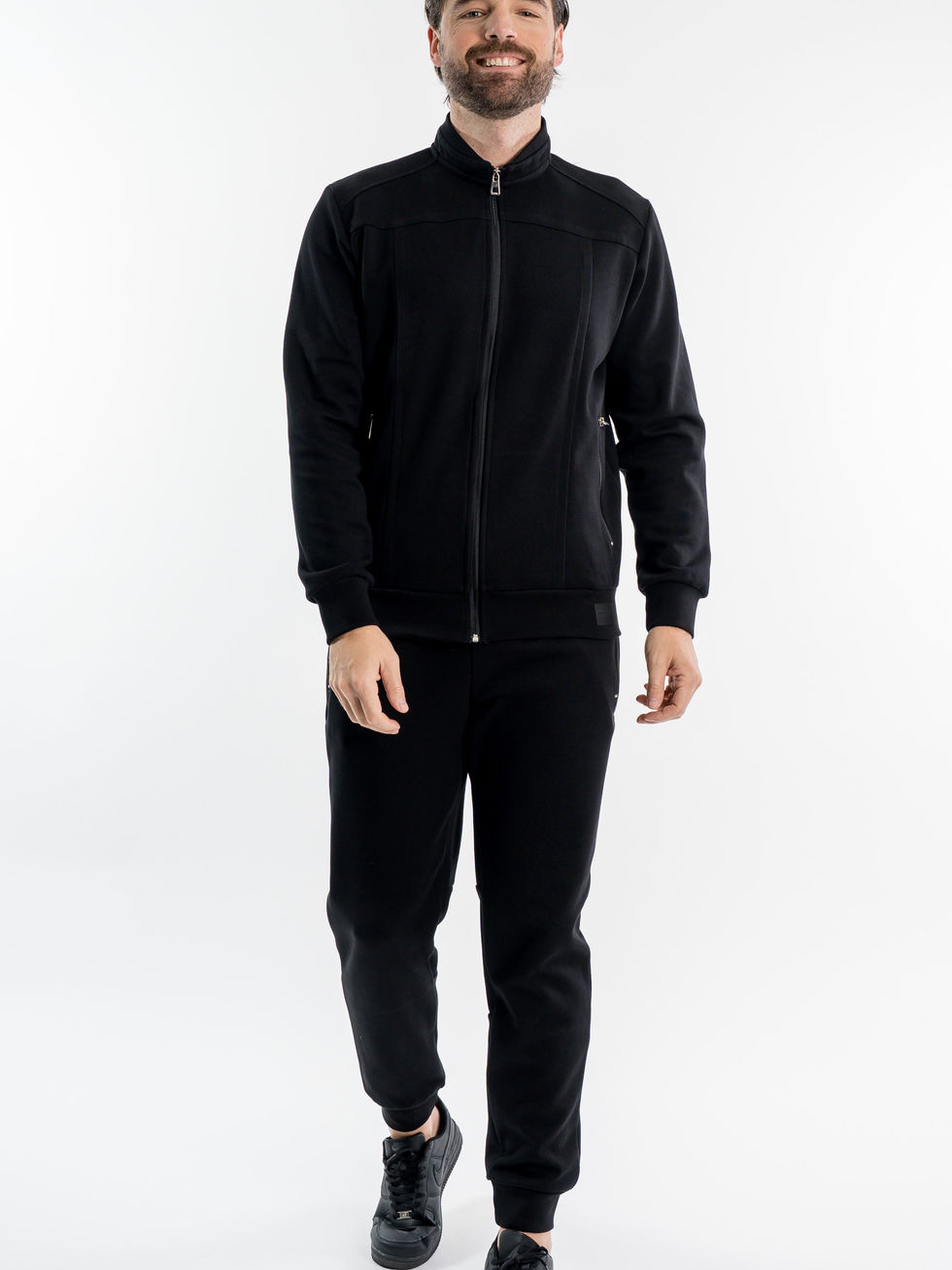 Komplet sa duksericom na rajsferšlus i donjim delom trenerke donosi moderan i funkcionalan izgled. Dukserica sa visokim okovratnikom i diskretnim detaljima naglašava sportski karakter, dok pantalone suženog kroja pružaju komfor i slobodu pokreta. Izrađen od kvalitetnog materijala, ovaj model je idealan za trening, šetnju ili svakodnevne aktivnosti, uz savršen balans stila i praktičnosti.