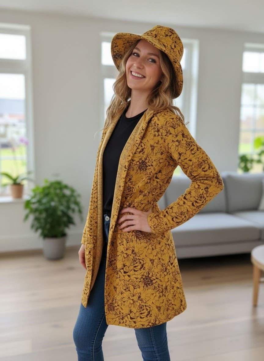 Ovaj atraktivan komplet sa zanimljivim kontrastnim detaljima kombinuje udobnost sportske garderobe sa sofisticiranim linijama koje naglašavaju figuru. Ravan kroj pantalona sa zvoncarama i bočnim prugama vizuelno izdužuje siluetu, dok strukirana jakna sa patent zatvaračem i praktičnim džepovima dodaje notu urbanog stila. Savršen je izbor za žene koje žele da izgledaju sređeno i moderno, a da se pritom ne odreknu komfora u svakodnevnim prilikama.