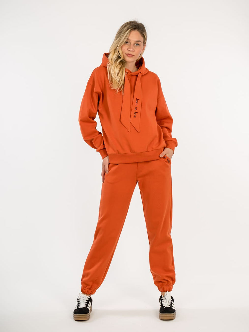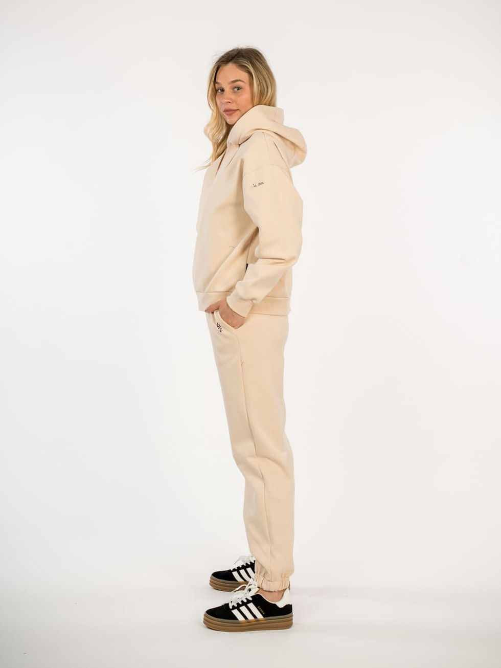 Udobna, meka i ženstvena – ova trenerka donosi savršen balans između opuštenog kroja i modernog izgleda. Gornji deo sa kapuljačom i dužim učkurima s natpisom daje joj upečatljiv karakter, dok ranfle na nogavicama čuvaju formu i pružaju dodatnu udobnost. Idealna za svakodnevne obaveze, šetnju gradom ili trenutke rezervisane samo za tebe. Lako se kombinuje sa patikama i rančevima u sličnom tonu za celodnevni komfor i stil.