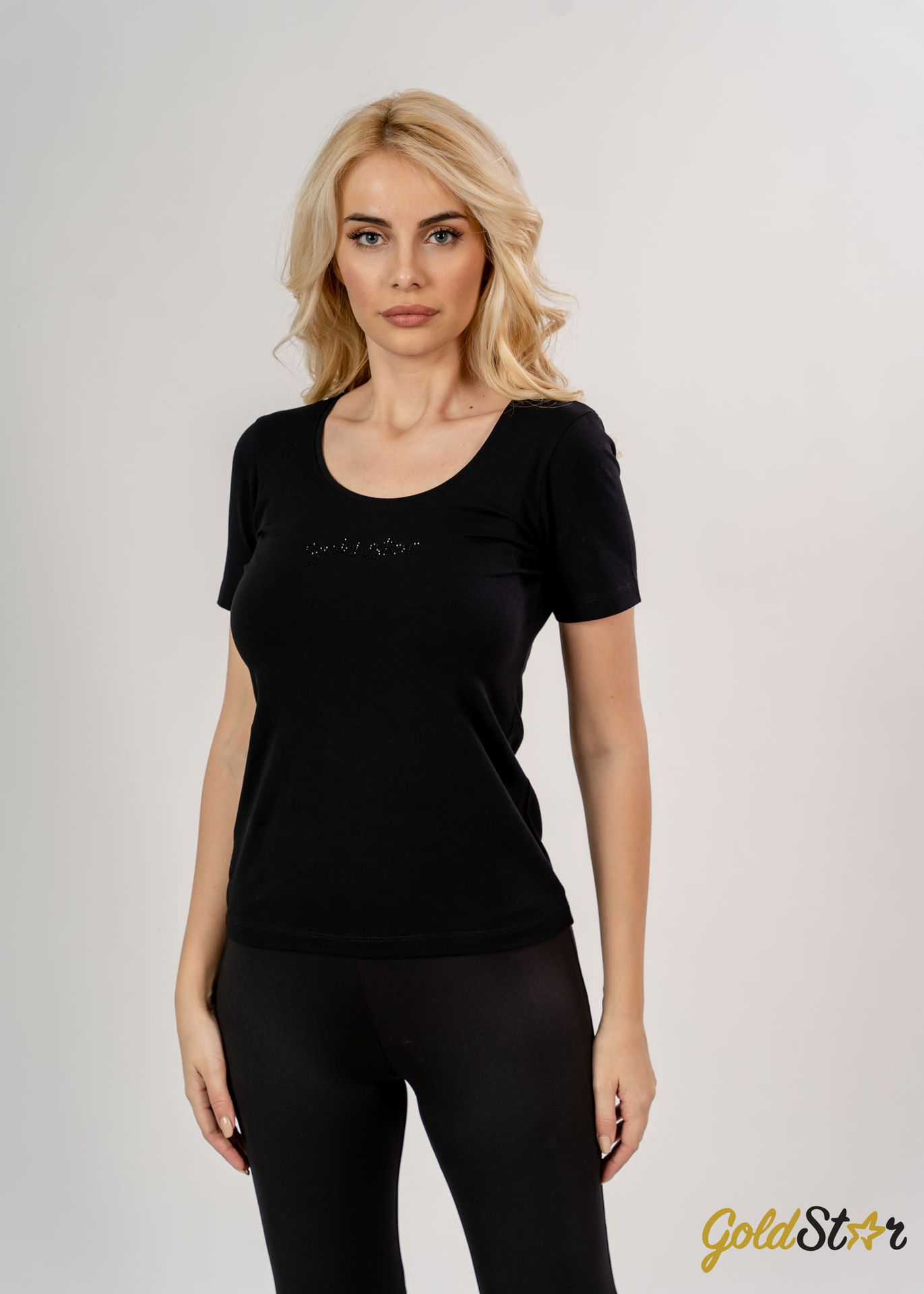 Majica klasičnog kroja sa blago zaobljenim izrezom prati liniju tela i pruža udobnost tokom celog dana. Diskretan print sa kristalima na grudima unosi dozu elegancije u jednostavan dizajn. Lako se kombinuje sa farmerkama, helankama ili šortsem, što je čini praktičnim izborom za razne prilike – od svakodnevnih aktivnosti do opuštenih izlazaka.