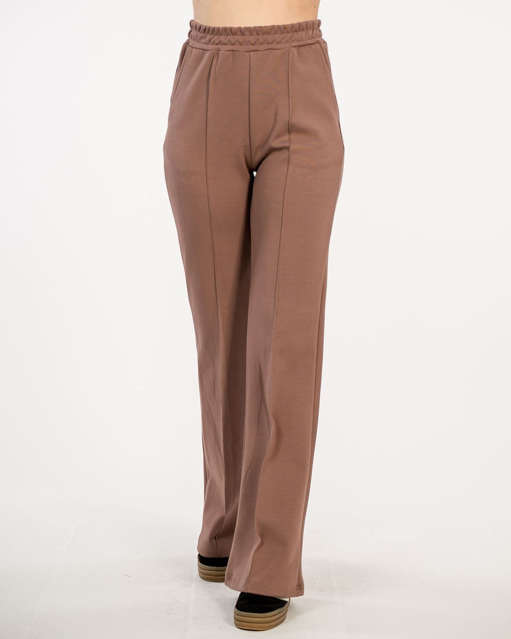 Trenerka koja ne izgleda kao trenerka – ovaj model donosi savršen balans između sportskog komfora i čistih, ženstvenih linija. Visok struk, blago zvonasti nogavice i fino strukturirana tkanina daju joj moderan izgled koji lako možeš uklopiti i van teretane ili dnevne rutine.