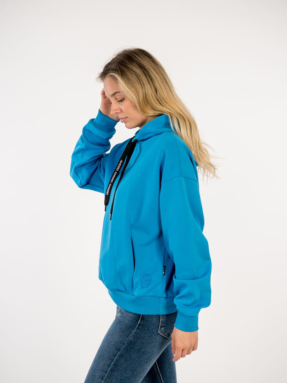 Ovaj duks sa kapuljačom donosi urbani izgled uz oversized kroj i široke učkure sa natpisima koji privlače pažnju. Mekan i udoban materijal čini ga idealnim za svakodnevno nošenje, dok diskretni reljefni logo pri dnu dodaje dozu elegancije u ležernom stilu. Savršen je izbor za kombinovanje uz farmerke, patike ili kao deo sportskog kompleta.